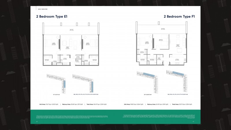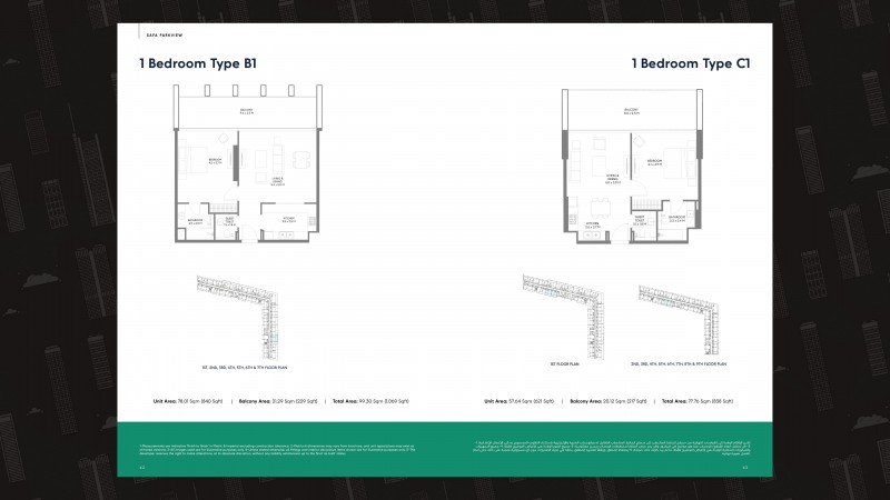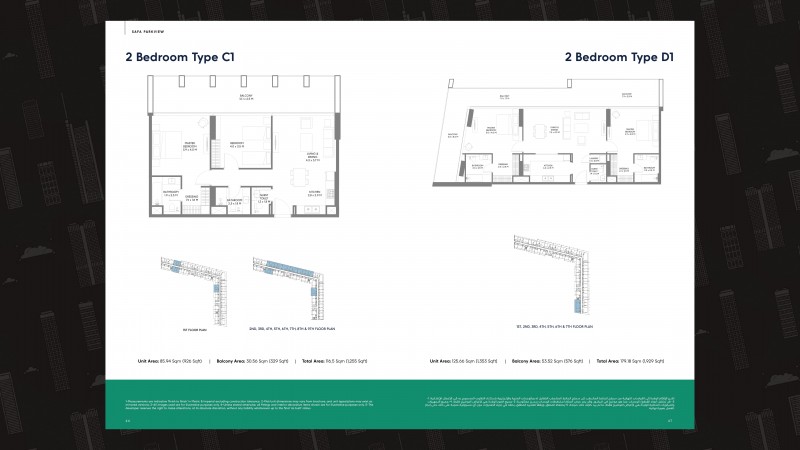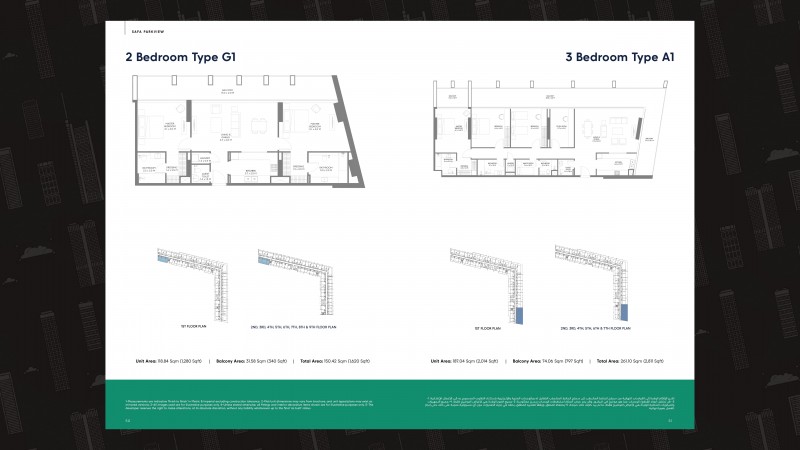 Built Up Area Approx. 838 sq.ft. (1 BR) to 1,948 sq.ft. (3 BR)