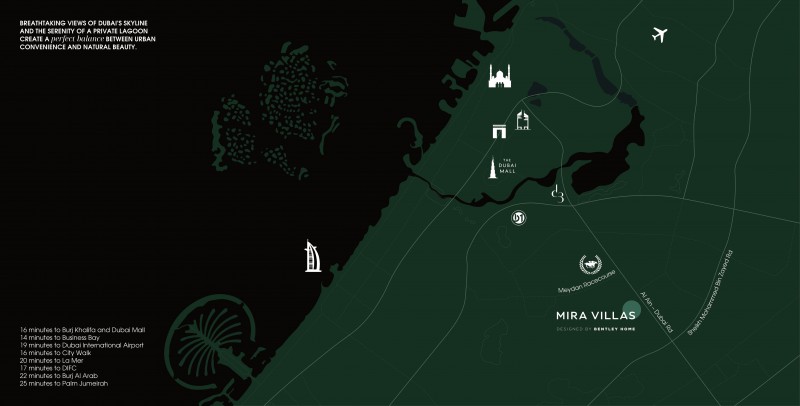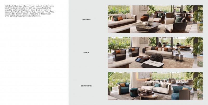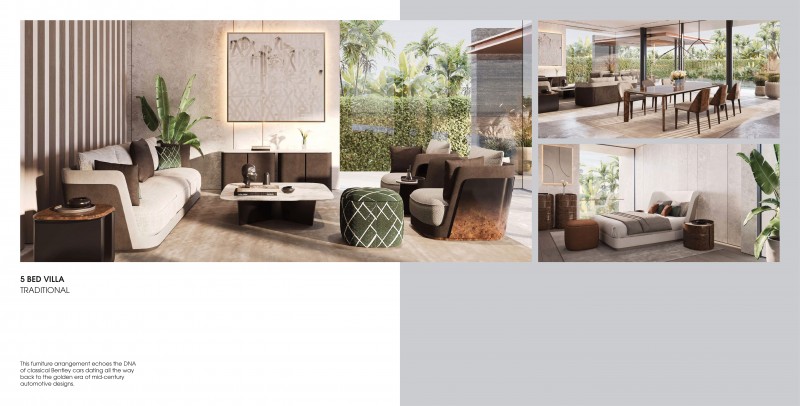 Mira Villas designed by Bentley Home is an exclusive community of 36 fully furnished luxury 5-bedroom waterfront villas and mansions, developed by Mira Developments in collaboration with Bentley Home. Each residence is crafted with Bentley Homes signature interiors, offering three design stylesTraditional, Formal, Contemporaryand is set along a private crystal lagoon in Meydan. The development includes high-end amenities such as private pools, rooftop terraces, a clubhouse with F&B, villa-scale finishes by prestigious brands, Technogym fitness facilities, private cinemas for mansions, and full concierge services. Handover is expected in Q1 2026.