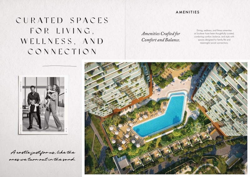 Soulever by BEYOND is a landmark twin-tower waterfront development designed by SAOTA, with interiors by ARRCC, offering 513 residences across 1 to 5 bedroom apartments, duplexes, chalets, and penthouses. The project features high ceilings ( 3.2 m), sweeping views, layered balconies, and resort-style amenities like gym, spa, cinema, pools, wellness zones, podium park, and grand lobbies. Handover is expected in Q1 2029.