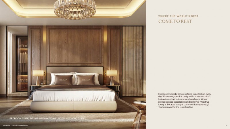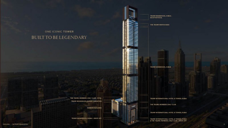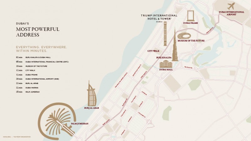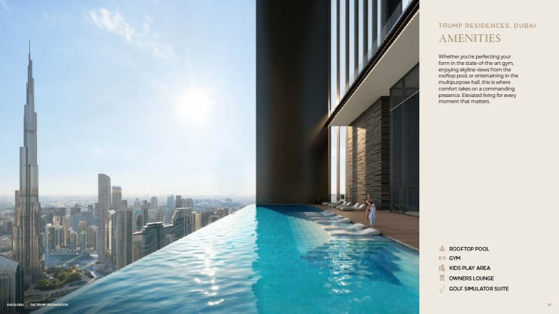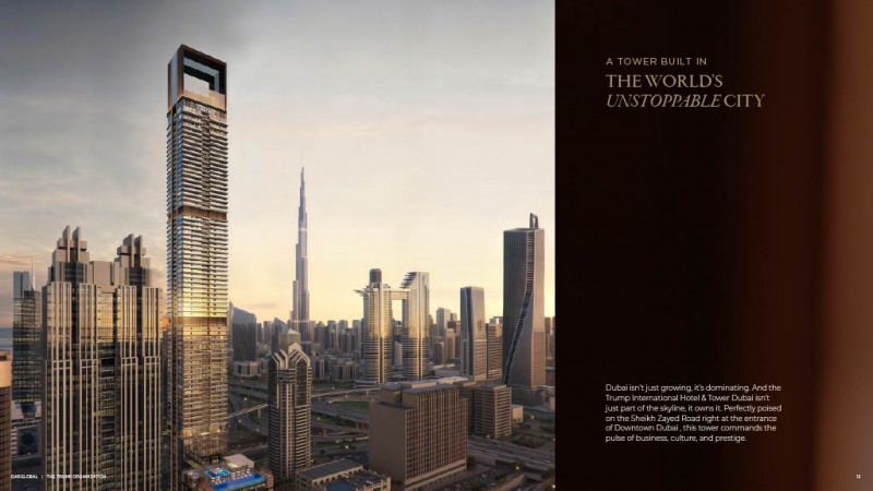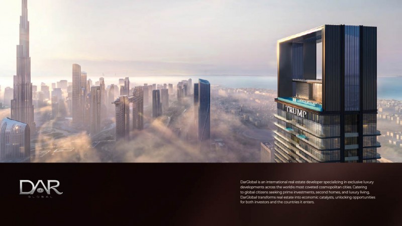 Rising 80 stories high on Sheikh Zayed Road, Trump International Hotel & Tower Dubai by Dar Global is set to become the regions most iconic luxury address. Featuring 1-4 bedroom residences and ultra-luxurious sky penthouses, it offers sweeping views of the Burj Khalifa, Arabian Gulf, and Dubais skyline. Residents will enjoy world-class amenities including the highest outdoor pool, a private members' club with spa, wellness & cigar lounge, fine dining, fitness centre, golf simulator and more. With handover expected in Q4 2031 and a prime Downtown location even minutes from Dubai Mall, DIFC & Dubai Airport, this is the ultimate statement of prestige and high-living.